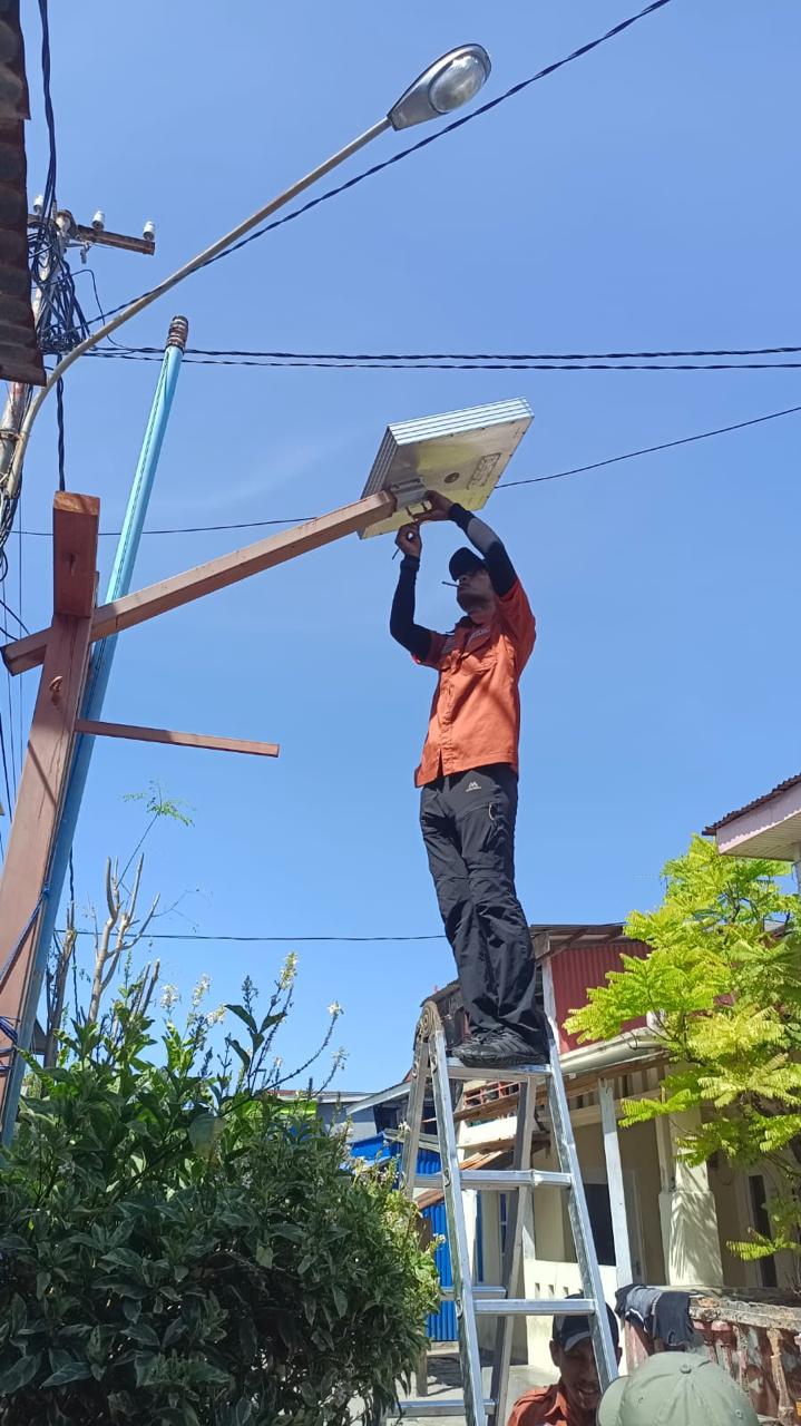 Menurutnya, penggunaan lampu berbasis tenaga surya ini menjadi solusi yang tepat bagi wilayah kepulauan, mengingat keterbatasan akses jaringan listrik konvensional di sejumlah titik.