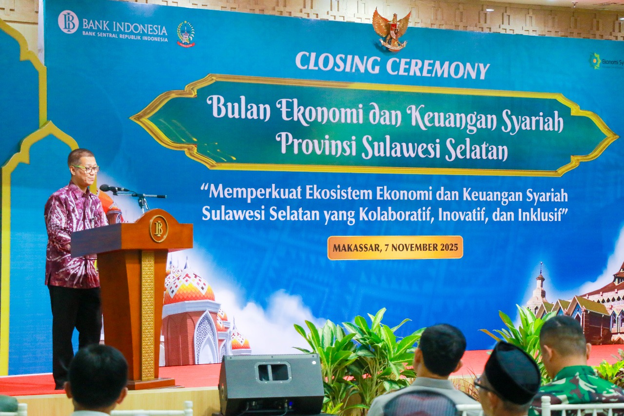 Makassar, zona redaksi.id— Kantor Perwakilan Bank Indonesia (KPwBI) Provinsi Sulawesi Selatan resmi menutup rangkaian kegiatan Bulan Ekonomi dan Keuangan Syariah (BEKS) 2025, yang digelar di Baruga Phinisi, Kantor BI Sulsel, Jumat (7/11/2025).