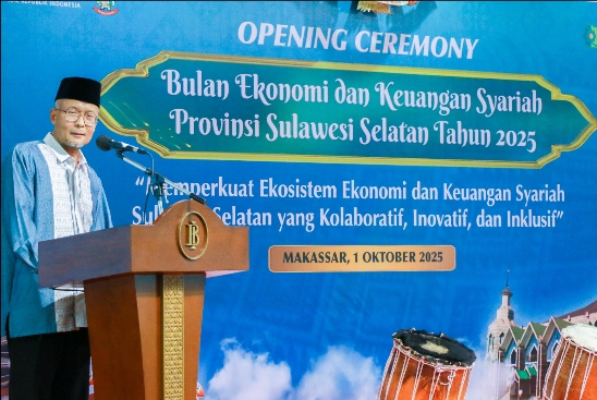 Makassar,zona redaksi.id– Kepala Perwakilan Bank Indonesia (BI) Provinsi Sulawesi Selatan, Rizki E. Wimanda menyampaikan sambutan saat seremoni pembukaan Bulan Ekonomi dan Keuangan Syariah (BEKS) 2025 pada Rabu, 1 Oktober 2025.