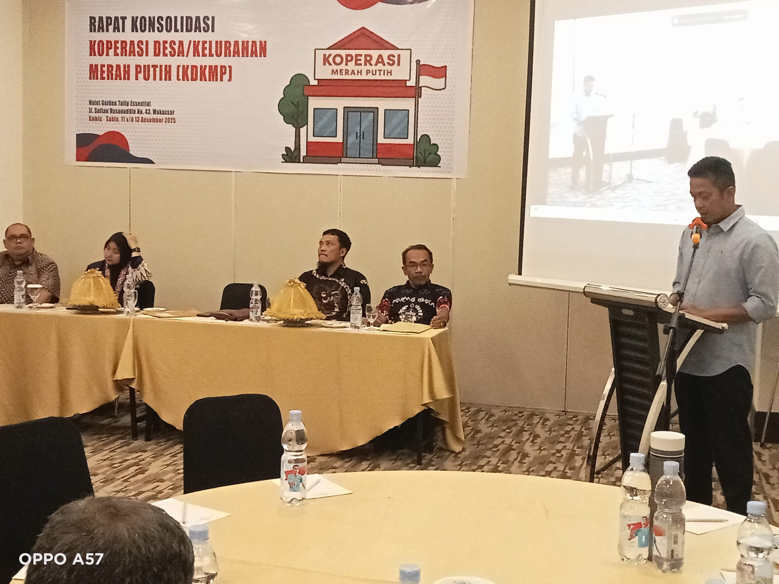 Makassar, zona redaksi.id- Kepala Dinas Koperasi dan UKM Provinsi Sulsel, Andi Eka Prasetia, membuka Rapat Konsolidasi (Rakor) Operasionalisasi Pelaksanaan Koperasi Desa/Kelurahan Merah Putih (KDKMP) di Hotel Grand Tulip Makassar (11/12/25)