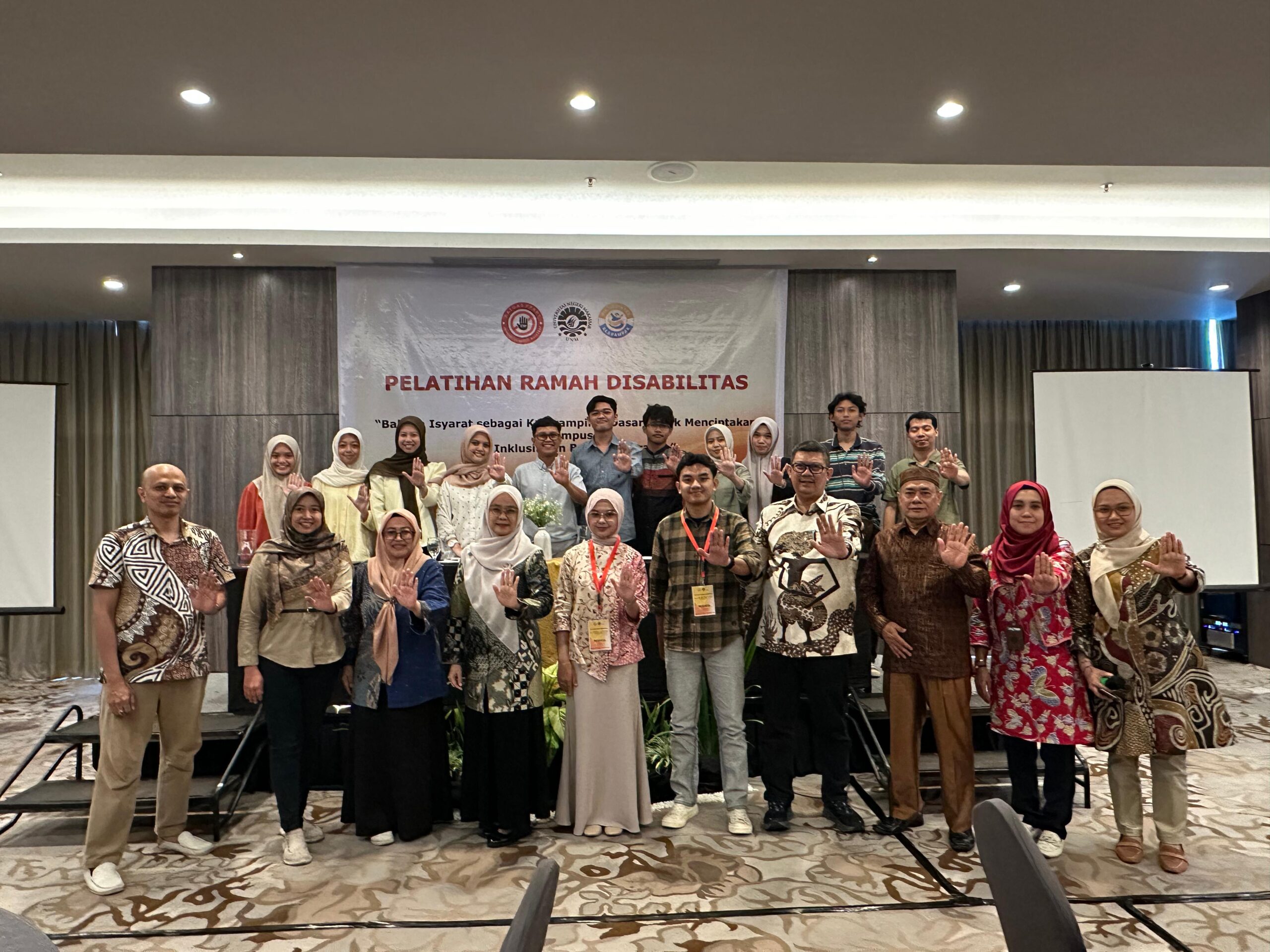 Makassar,zona redaksi.id– Dalam rangka mewujudkan lingkungan kampus yang aman dan bebas dari segala bentuk kekerasan, Satuan Tugas Pencegahan dan Penanganan Kekerasan Seksual (Satgas PPK) Universitas Negeri Makassar (UNM) menyelenggarakan Pelatihan Ramah Disabilitas dengan tema “Bahasa Isyarat sebagai Keterampilan Dasar untuk Menciptakan Kampus yang Inklusif dan Bebas Kekerasan.”