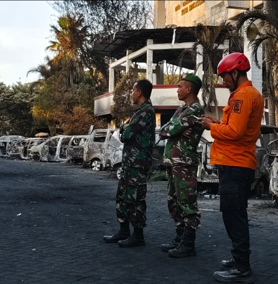 Selain pemantauan kondisi gedung yang terdampak, tim BPBD juga bekerja sama dengan TNI, Polri, serta instansi terkait dalam menjaga keamanan lokasi, mengantisipasi potensi kebakaran susulan, dan melakukan asesmen kerusakan
