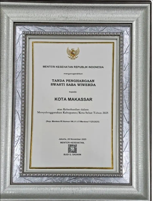 “Makassar menjadi salah satu dari 41 kabupaten/kota di Indonesia yang dinyatakan layak menerima predikat ini, menandai pengakuan nasional terhadap kemajuan pembangunan kesehatan dan lingkungan di Kota Anging Mamiri,” jelasnya.