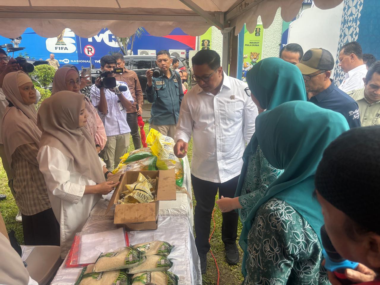 Usai berkesempatan berbincang dengan sejumlah kepala daerah terkait kondisi kebutuhan pokok dan memberi arahan, Hermawan meninjau langsung sejumlah stand yang menjual berbagai kebutuhan.