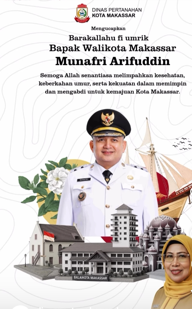 “Barakallāhu fī umrik, semoga setiap langkah Bapak menjadi ladang pahala dan membawa keberkahan bagi masyarakat Kota Makassar.”ujarnya.