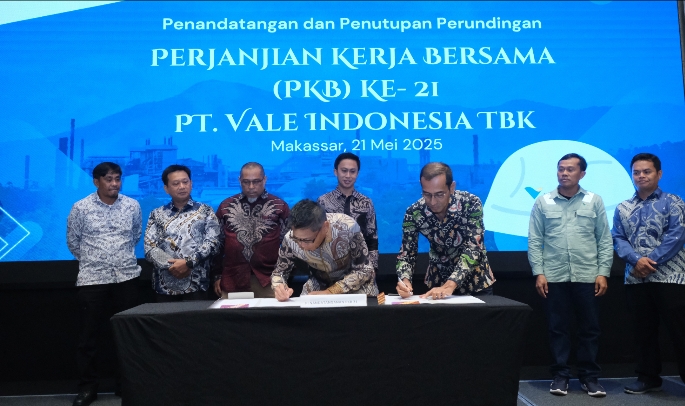 Sebagai wujud nyata dari komitmen tersebut, PT Vale resmi menandatangani Perjanjian Kerja Bersama (PKB) ke-21 bersama serikat pekerja dalam sebuah forum penuh semangat kolaborasi dan kesetaraan, Selasa, 21 Mei 2025 di Makassar.