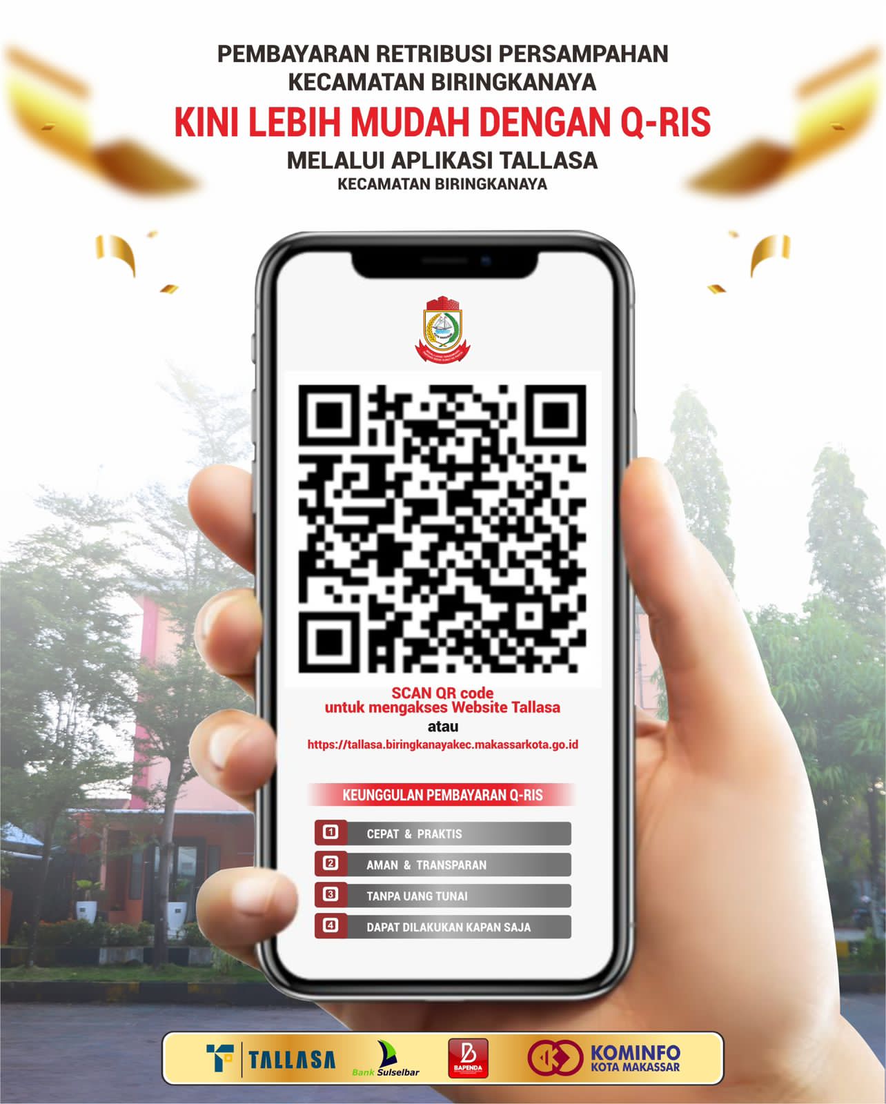 Makassar,zona redaksi .id– Pemerintah Kecamatan Biringkanaya terus melakukan inovasi pelayanan publik dengan menghadirkan kemudahan pembayaran retribusi persampahan melalui Aplikasi Tallasa berbasis QRIS.