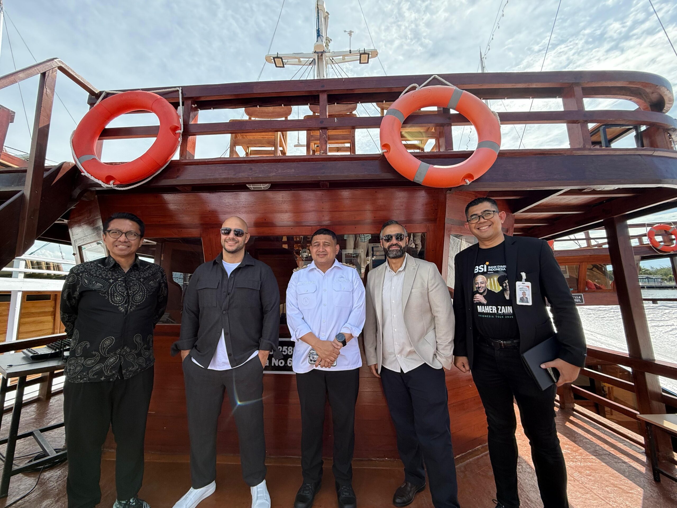 Maher Zain tampak sangat menikmati perjalanan di laut, dengan angin sepoi-sepoi yang menerpa wajahnya.