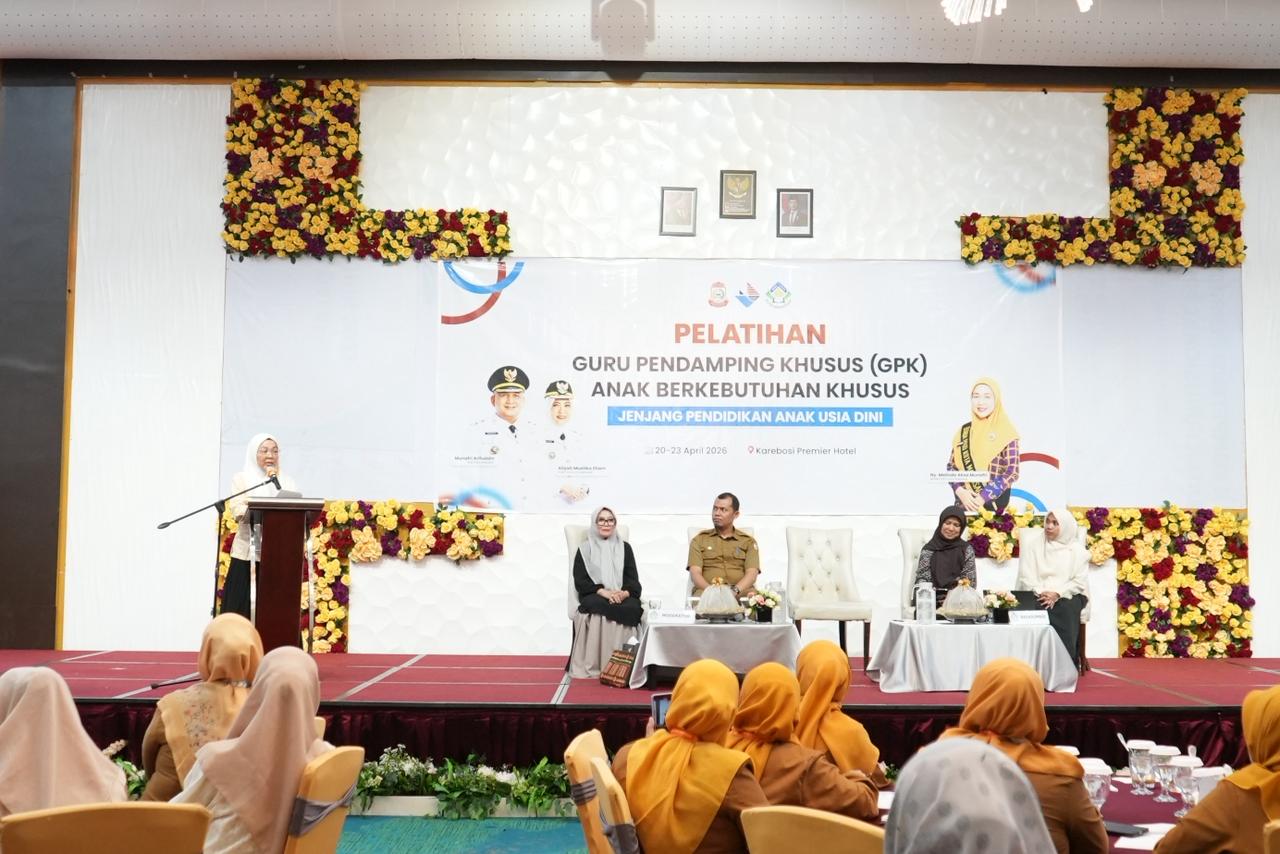 Makassar, zona redaksi.id– Dengan komitmen memperkuat pendidikan inklusi, Bunda PAUD Kota Makassar, Melinda Aksa, resmi membuka Pelatihan Guru Pendamping Khusus (GPK) yang diinisiasi oleh Pokja Bunda PAUD bersama Dinas Pendidikan Kota Makassar di Ballroom Gunung Malino, Karebosi Premier Hotel, Senin (20/4/2026).