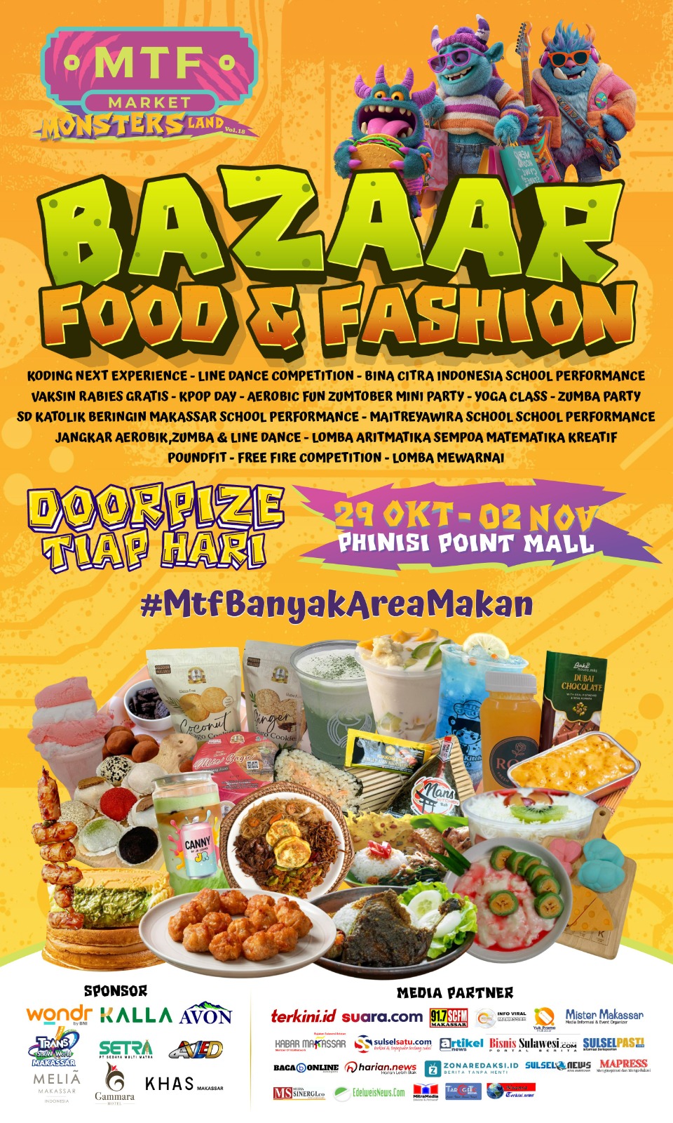 Jangan lewatkan kemeriahan MTF Market Monster Land mulai 29 Oktober hingga 2 November 2025 di Phinisi Point Mall Makassar.