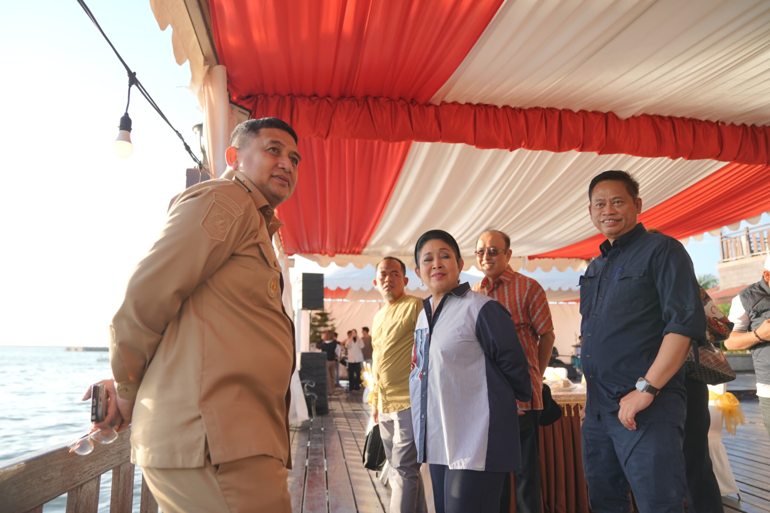 Usai pelayaran, Munafri bersama Fatma, Titiek Soeharto, dan Mentan Amran Sulaiman disambut suasana hangat dan sajian kuliner khas Makassar makan malam di teras Hotel Pantai Gapura.(*)