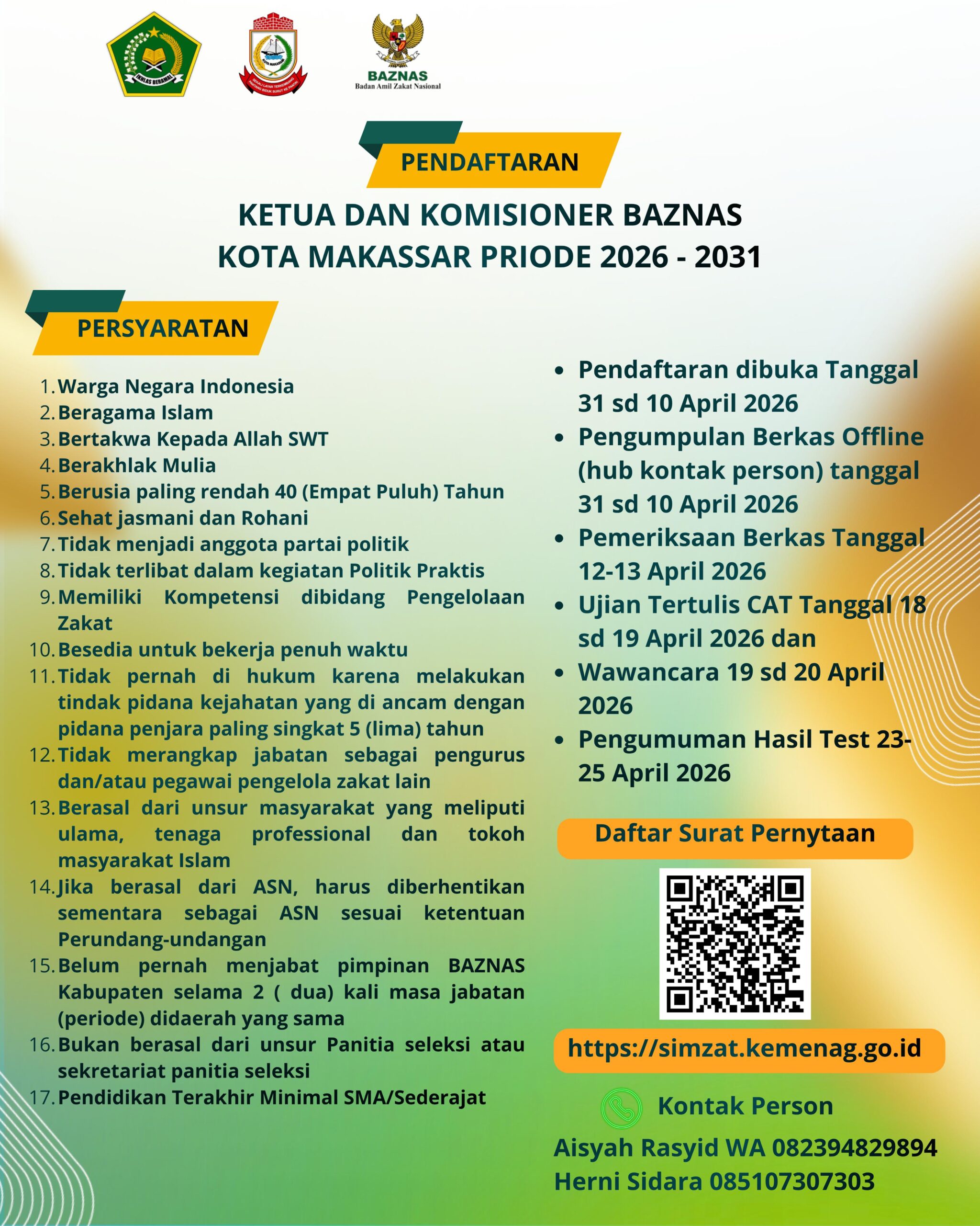 Persyaratan Calon Komisioner BAZNAS Kota Makassar: