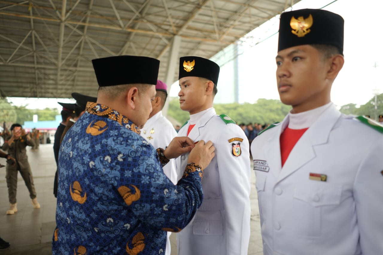 Upacara berlangsung khidmat dan dirangkaikan dengan pemberian Pin Emas sebagai bentuk apresiasi kepada Tim Paskibraka Kota Makassar Tahun 2025.