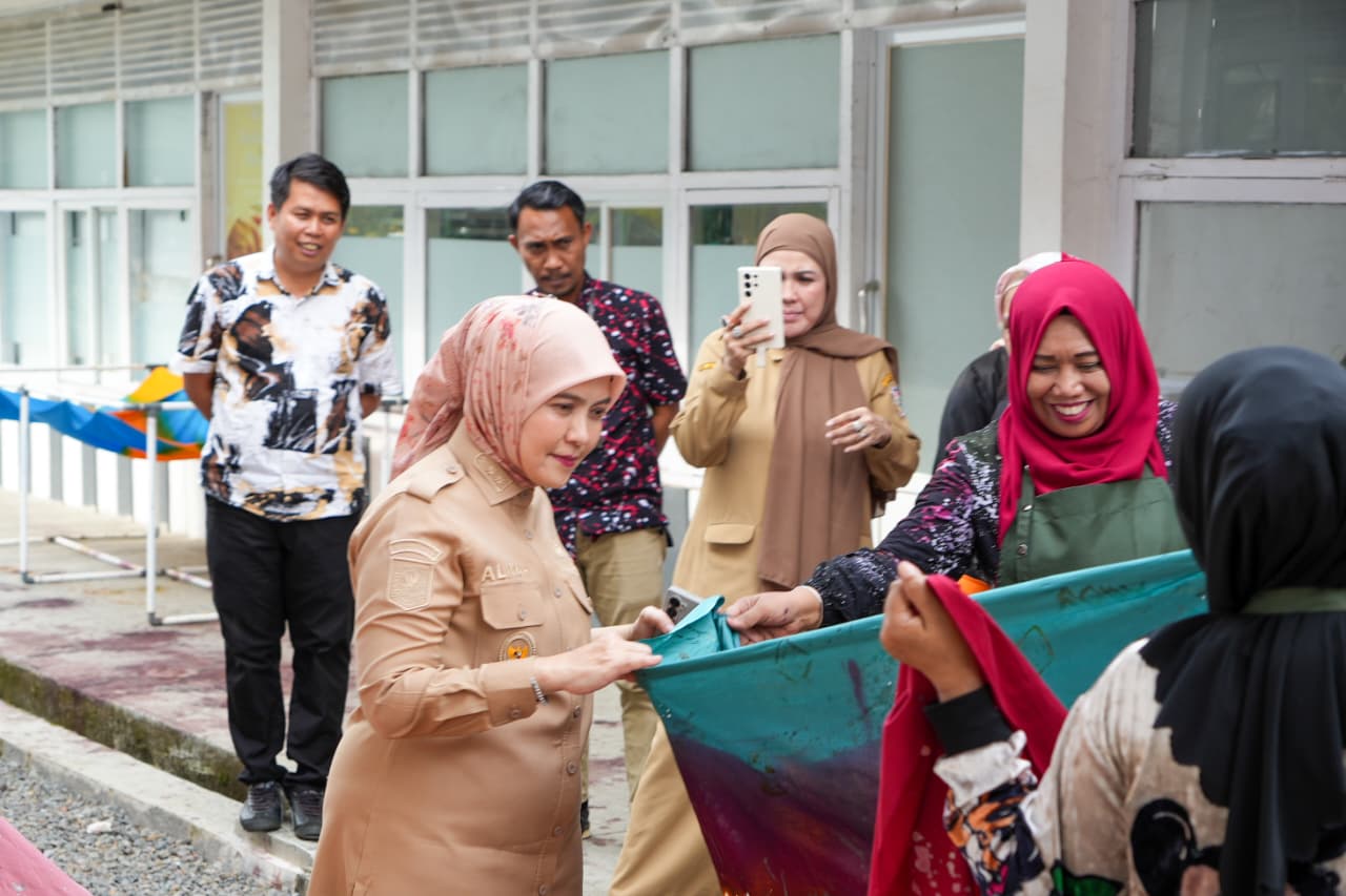 Dalam kesempatan itu, Aliyah Mustika Ilham meninjau langsung kegiatan pelatihan batik ciprat dan menjahit yang diikuti oleh 16 peserta.
