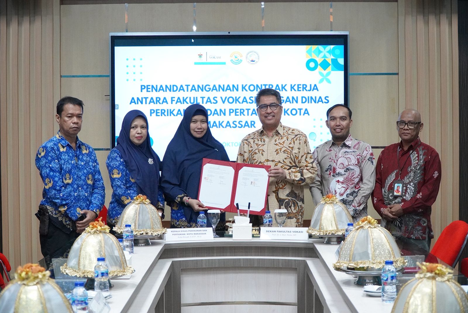Kerja sama ditandatangani oleh Prof. Dr. Ir. Muh. Rest, MP. Dekan Fakultas Vokasi Unhas dan Aulia Arsyad, S.STP., M.Si. Kepala Dinas Perikanan dan Pertanian Pemerintah Kota Makassar. Turut hadir Ketua Program Studi Teknologi Produksi Ternak Syamsuddin, S.Pt., M.Si dan Kepala Bidang Peternakan dan Kesehatan Hewan Mirdayanti, S.Pt., M.Agb serta Sub Koordinator Kesehatan Masyarakat Veteriner Ahmad Razid, S.Pt., M.M.