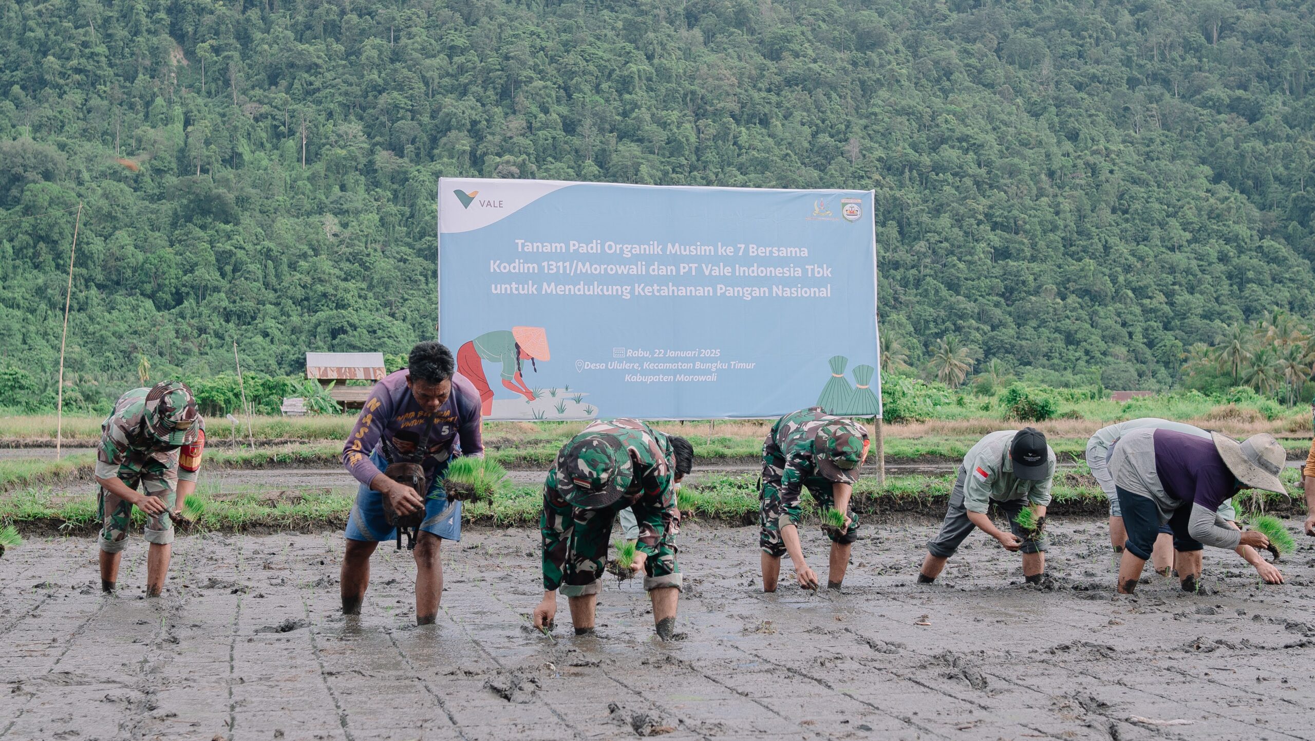 Komitmen Berkelanjutan untuk Ketahanan Nasional Rangkaian kunjungan juga melibatkan penanaman padi musim ke-7 di lahan pertanian binaan PT Vale di Ululere, Bungku Timur, serta kunjungan ke Galeri Bansala, pusat produk organik binaan PT Vale.