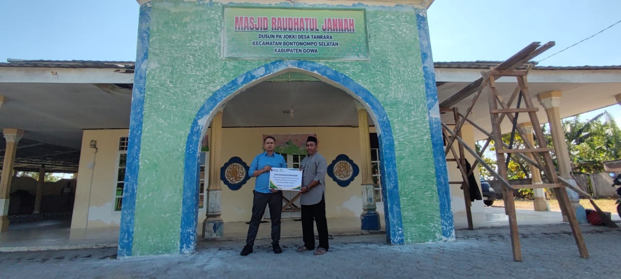 PT Pegadaian melalui program Tanggung Jawab Sosial dan Lingkungan (TJSL) menyalurkan bantuan untuk renovasi Masjid Raudhatul Jannah yang berada di Kecamatan Bontonompo Selatan, Kabupaten Gowa.
