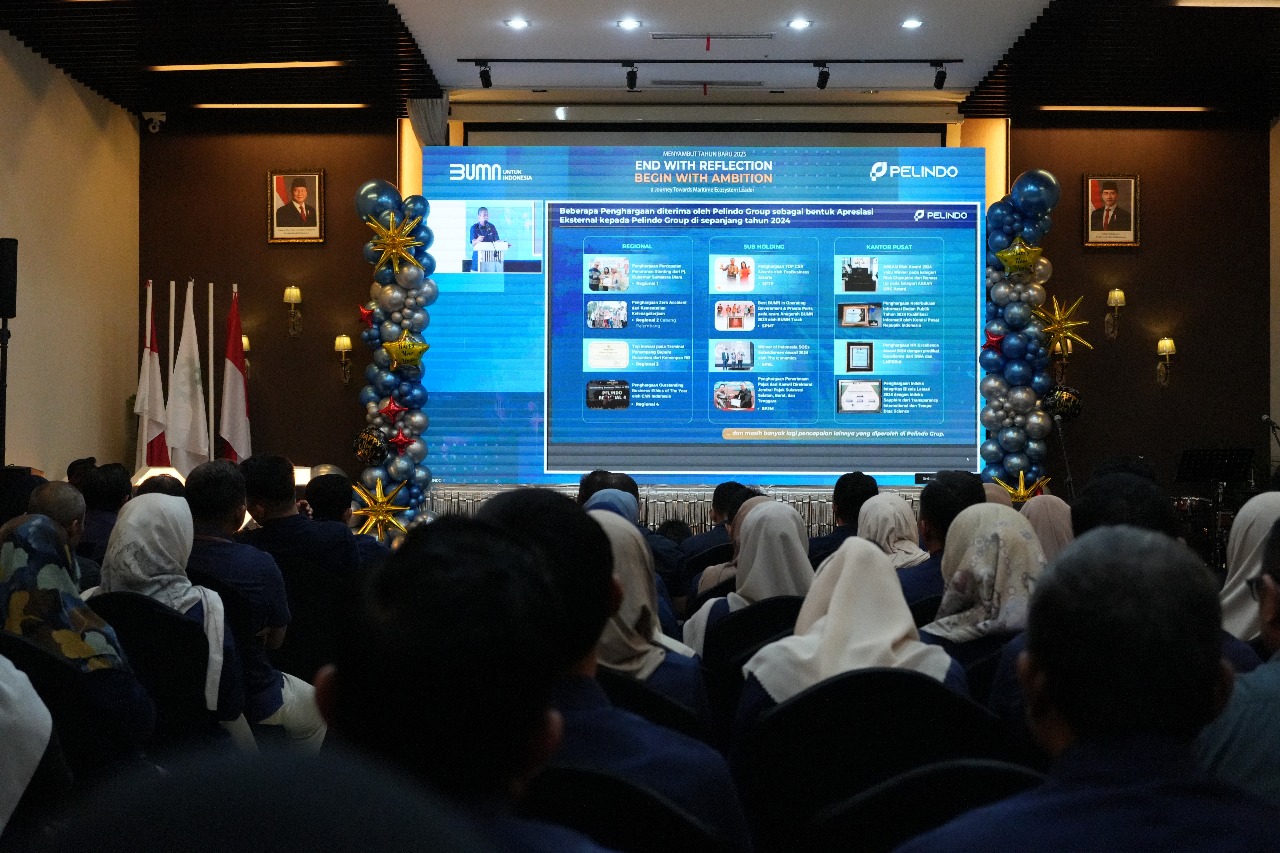 Hal itu disampaikan Direktur Utama Pelindo Arif Suhartono dalam arahannya pada perayaan menyongsong Tahun Baru 2025 dengan tema “End with Reflection, Begin with Ambition: a Journey Towards Maritime Ecosystem Leader” yang berlangsung secara hybrid dari 5 kota yaitu, Medan, Jakarta, Surabaya, Makassar, dan Bitung dengan melibatkan seluruh insan Pelindo Group yang ada di wilayah masing-masing, Selasa (31/12/2024).