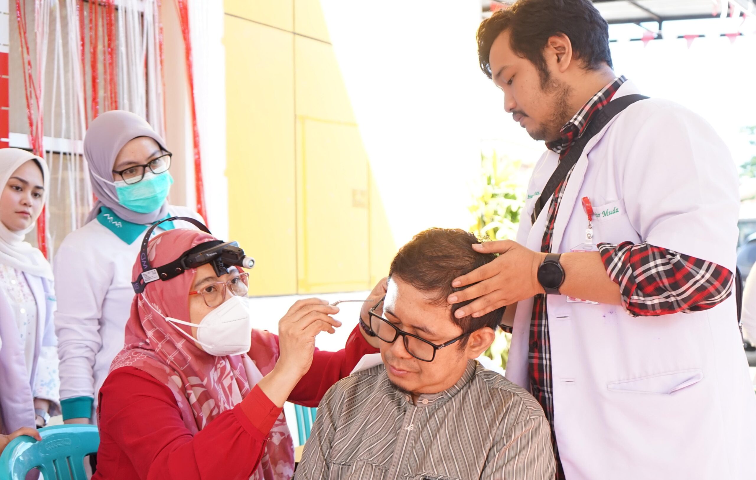 Pemeriksaan telinga dilakukan langsung oleh tim dokter spesialis dan subspesialis THT RSUD Haji Makassar yang berpengalaman di bidangnya. Warga mendapat layanan pembersihan kotoran telinga sekaligus konsultasi jika ditemukan keluhan atau masalah.