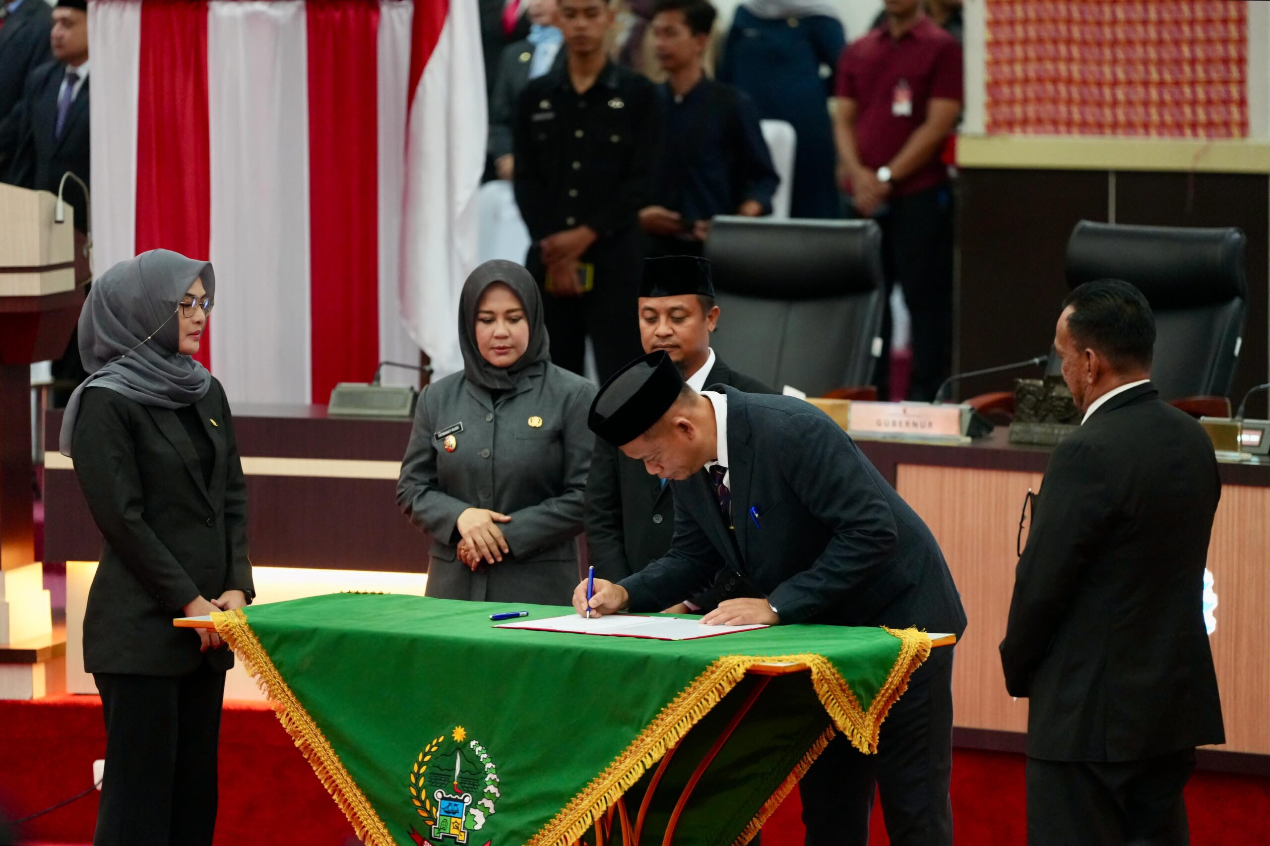 Penyerahan memori jabatan disaksikan Ketua DPRD Sulsel dan Kasubdit Wilayah IV Direktorat Fasilitasi Kelembagaan dan Kepegawaian Perangkat Daerah Ditjen Otda Kemendagri.