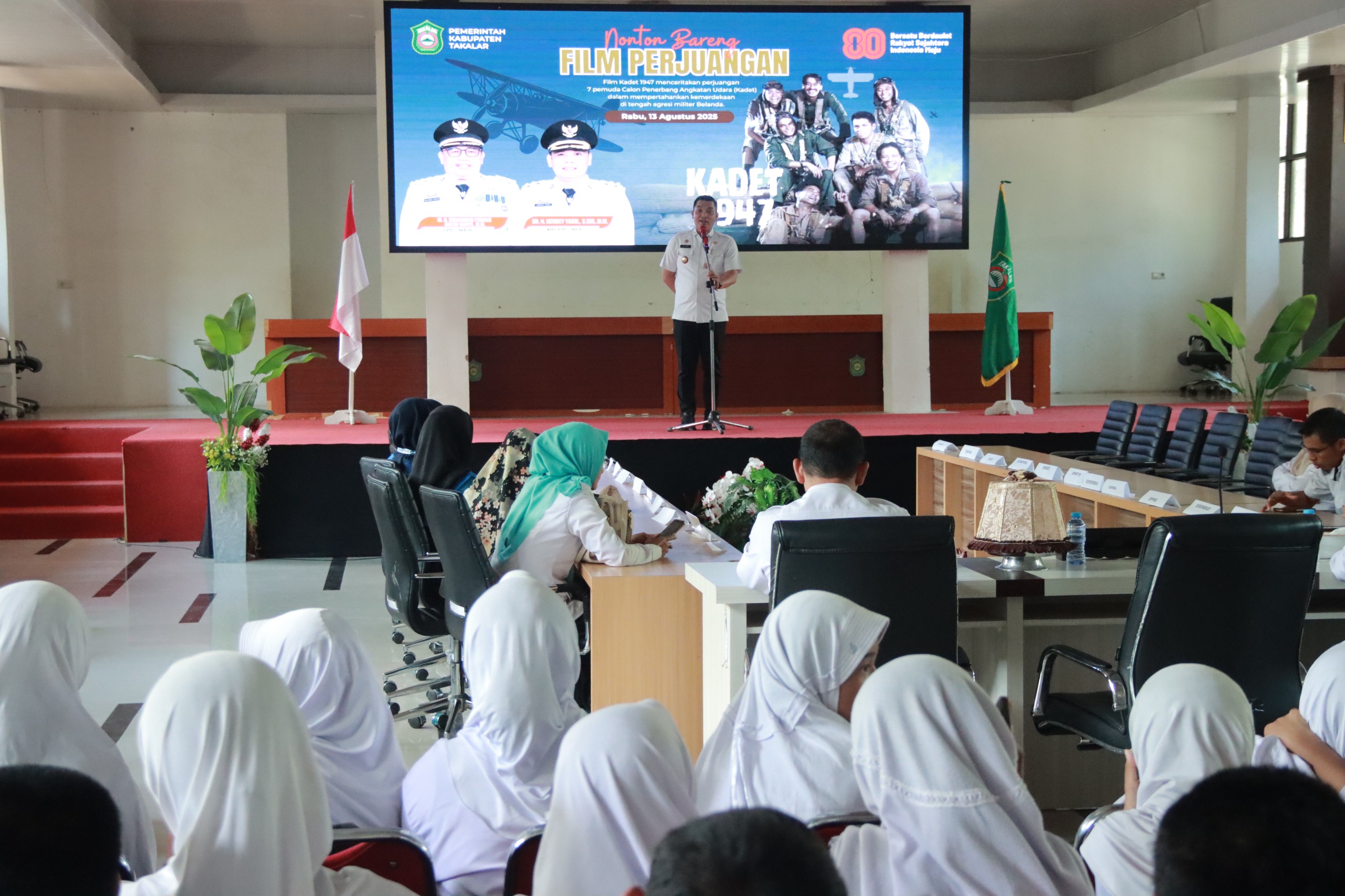 Film perjuangan yang di putar berjudul KADET 1947, film KADET 1947 menceritakan perjuangan 7 pemuda calon penerbang angkatan udara (Kadet) dalam mempertahankan kemerdekaan ditengah agresi militer belanda berlangsung di Ruang Pola Kantor Bupati Takalar yang dihadiri Pimpinan OPD Kab. Takalar, para guru dan pelajar tingkat SMP di Kab. Takalar, Rabu 13 Agustus 2025.