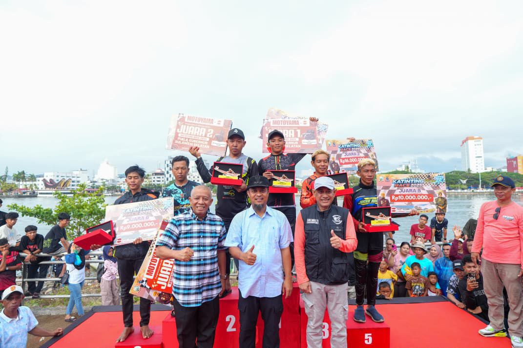 “Alhamdulillah hari ini kita menyaksikan langsung semangat luar biasa para peserta di Grand Final Katinting Race 2025. Saya ucapkan selamat kepada rider asal Kabupaten Sidrap yang berhasil meraih juara pertama,” ujar Andi Sudirman.