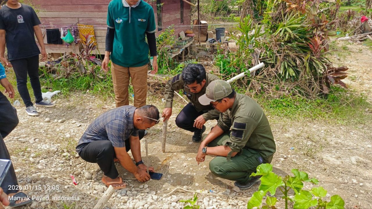 Aceh Tamiang,zona redaksi.id– Wahdah Islamiyah melalui Posko 3 Desa Ie Bintah, Kecamatan Manyak Payed, Kabupaten Aceh Tamiang, melaksanakan penentuan arah kiblat sementara di lokasi terdampak banjir, Kamis, 15 Januari 2026. Kegiatan ini dilakukan untuk memastikan masyarakat tetap dapat melaksanakan ibadah salat dengan benar meskipun berada dalam kondisi darurat.