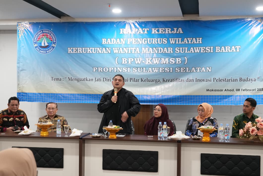 Hal tersebut disampaikan Munafri saat memberikan menghadiri Rapat Kerja BPW-KWMSB Sulsel bertajuk “Menguatkan Jati Diri sebagai Pilar Keluarga, Kreativitas, dan Inovasi Pelestarian Budaya” di Gedung Makassar Government Center (MGC), Minggu (8/2/2026). Munafri hadir didampingi Ketua TP PKK Kota Makassar Melinda Aksa.